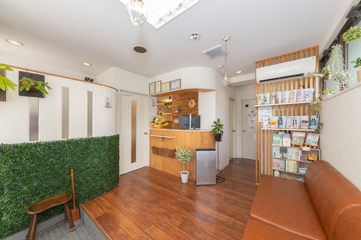 広い待合室で、診療の際もリラックスしてお過ごしいただけます。当院では診療室にキッズスペースを完備しており、診療中にお子様の様子が気になる、そんなお悩みも解決いたします。